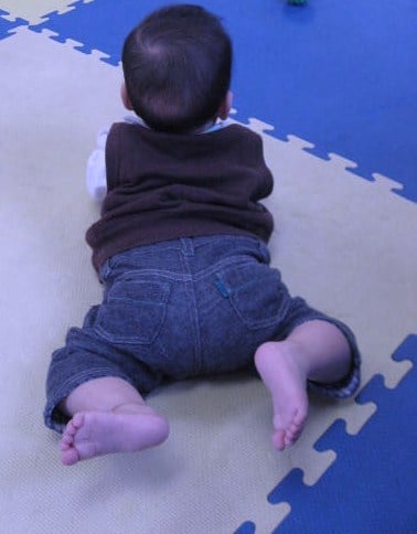 前回の運動と同様にうつ伏せの赤ちゃんを